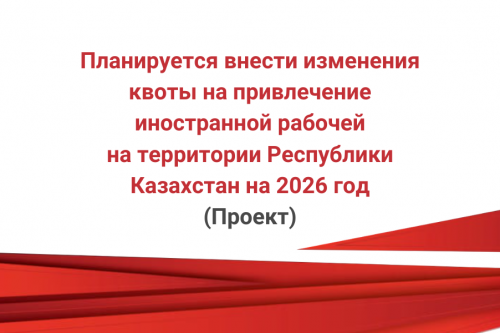 Планируется внести изменения квоты на привлечение иностранной рабочей на территории Республики Казахстан на 2026 год (Проект)